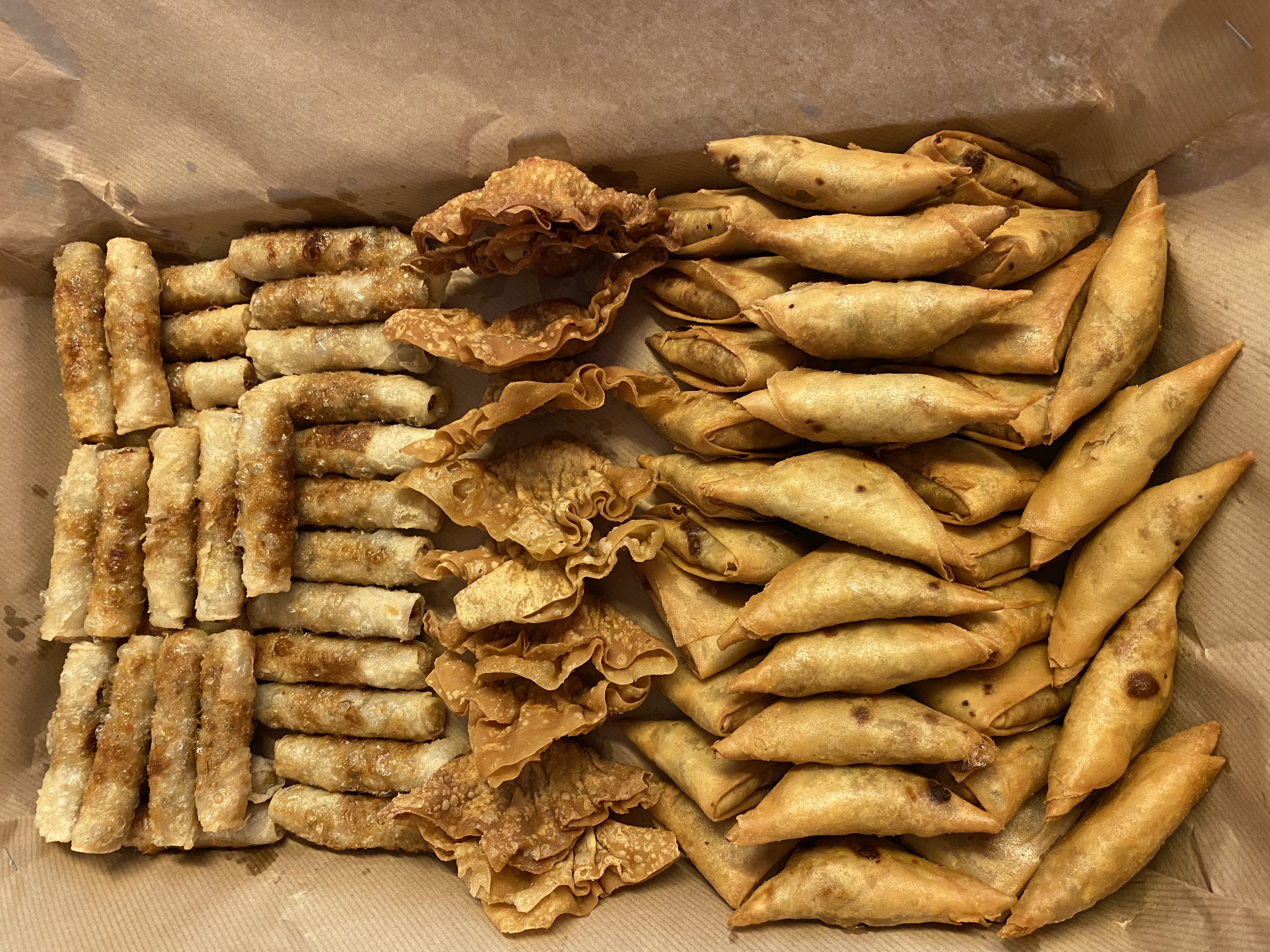 plateaux emporter 30 pieces( nem, samossa, raviolis frit) , 10 pieces de chaque est 31€